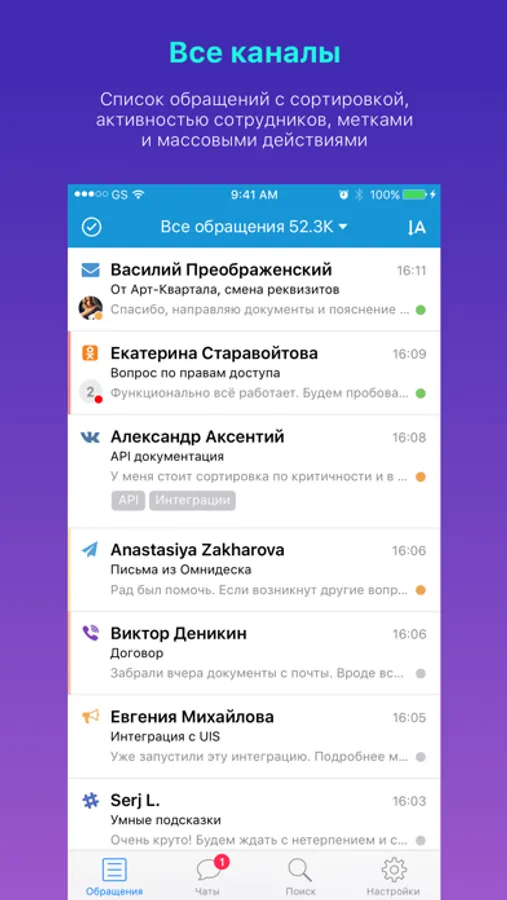 iOS приложение Омнидеска позволяет обрабатывать обращения всех каналов с мобильного устройства и оставаться всегда на связи с вашими клиентами.