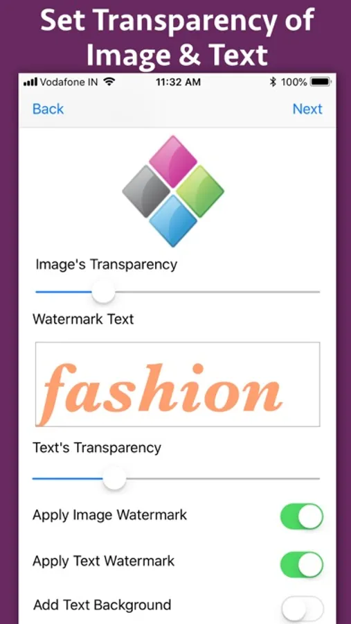Add text and image watermark to videos. Customize watermarks further with various options like Transparency, text font, text colors ,text size and many more.