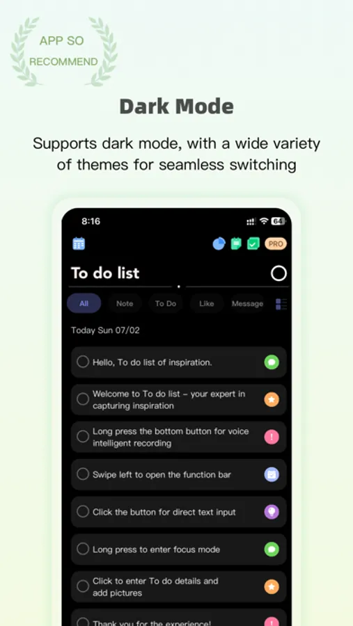 "To do list of inspiration", a collection of to-do lists, sticky notes, voice memos, text editors, time management, and event reminder tools. One App meets all your efficiency needs and is continuously optimized.