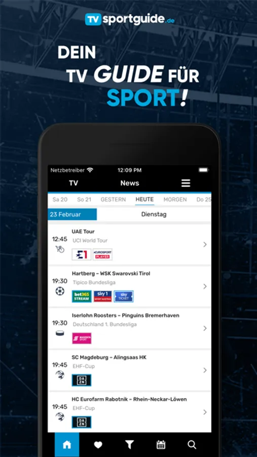 -Filtern Sie das Programm nach Sportarten oder TV Sendern