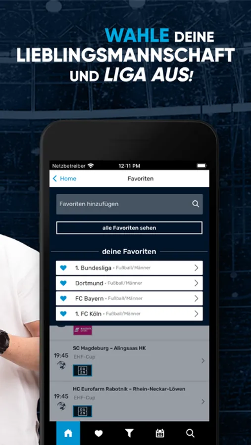 -Fügen Sie Ihre ganz persönlichen Lieblingsligen und/oder Teams hinzu.