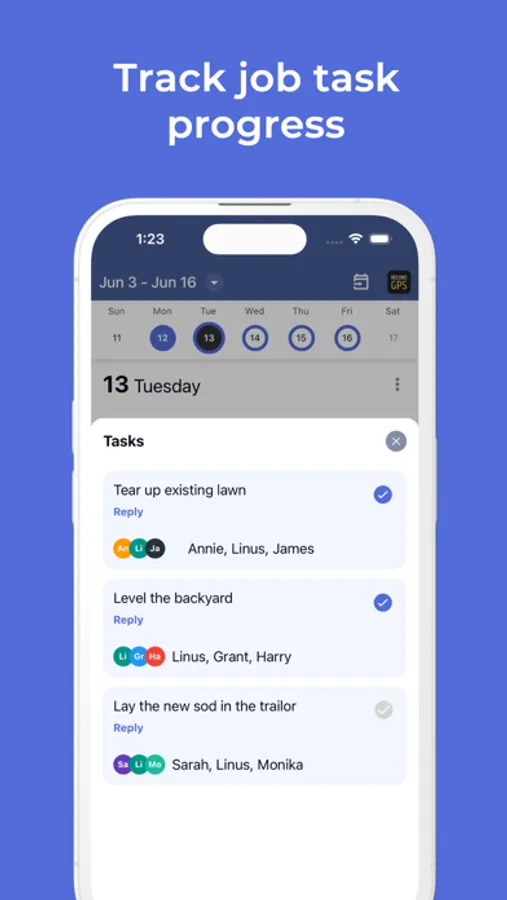 The Employee Link hours tracker is so simple to learn your whole crew will be able to clock in and start tracking time right away. With one click they can view tasks on their schedule and tap their task to mark it complete. Your crew can even add notes to describe the tasks they worked on. Increase productivity and decrease overtime by tracking attendance and break time length.