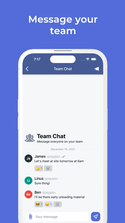 Message your entire crew at once with mobile workforce messaging. Set announcements to make sure everyone is aware of important messages. Alert your crew of last minute changes so everyone knows on time.