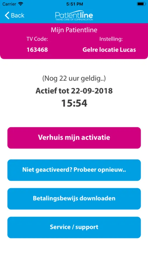 Via de Patientline app activeert u de TV voor 1 dag, 2 dagen 3 dagen of 4 dagen. De TV schakelt vanzelf uit na de gekozen termijn dus u rekent nooit teveel af.
