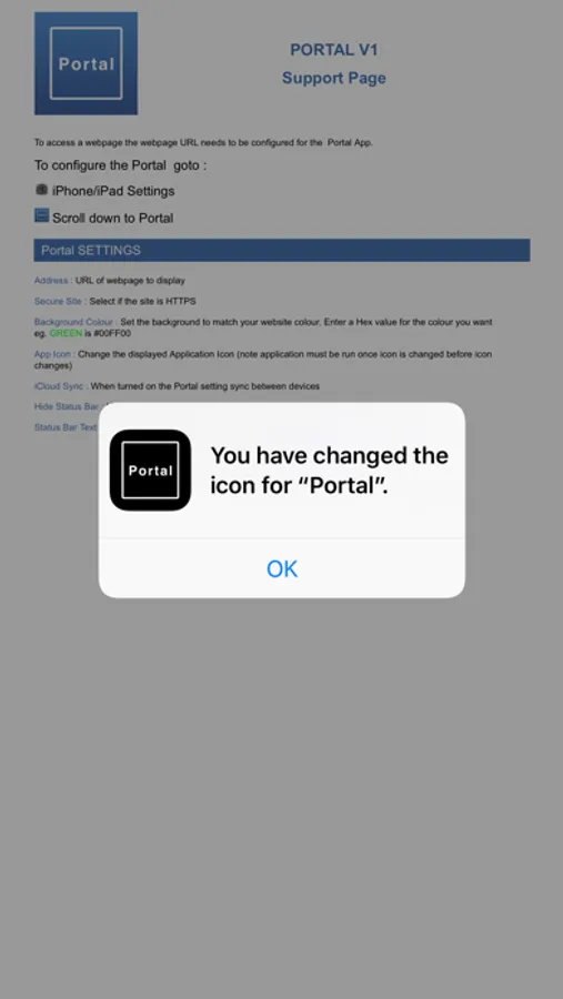 Portal also allows you to change the apps icon to one of several icons built into the app, to either help match the app to your company colours or indicate that its the company or home app etc.