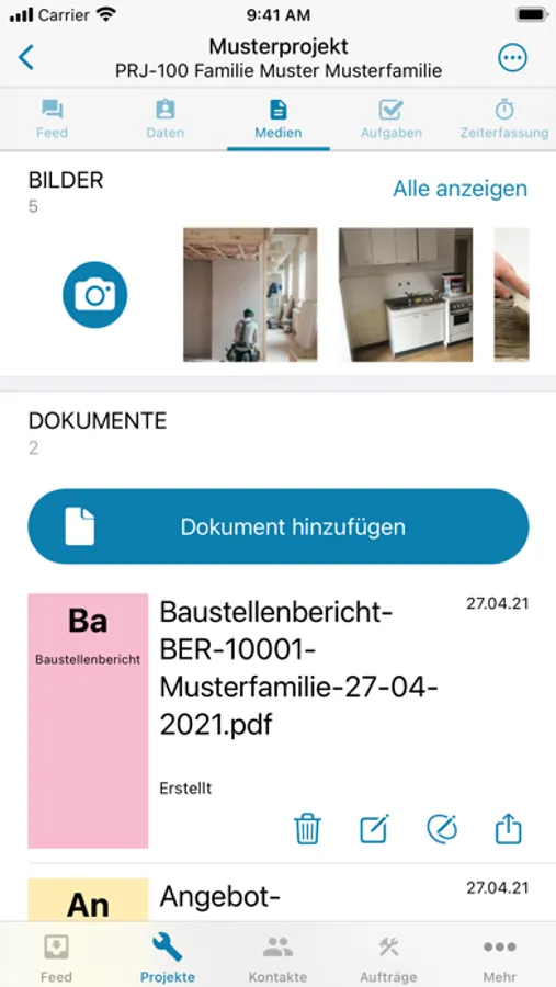 Angebote, Aufträge, Rechnungen, Bestellscheine, Baustellenberichte