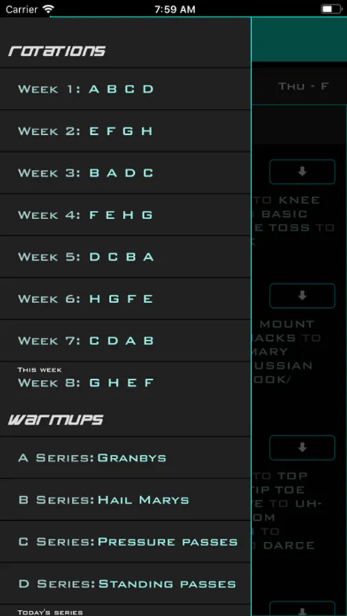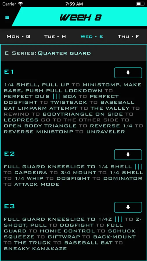The 10th Planet Warmup app automatically calculates the weekly warmups your 10th Planet school should be studying and presents it to you in a simple 4-day display.
