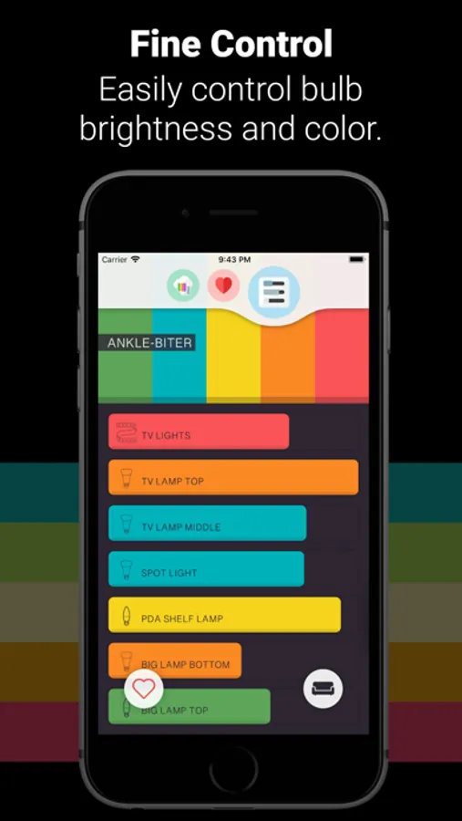 Jelly for Hue will apply the palette to your room with a tap and randomize the colors for fun combinations with each tap. For fine grain control you can save, organize and adjust the color for each bulb for the perfect atmosphere in each room.