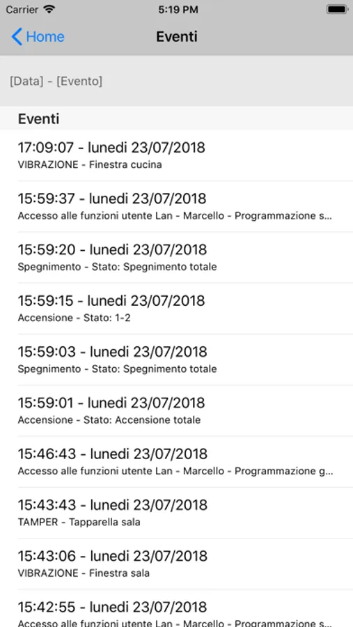 Attivazione, disattivazione, gestione dei sensori e dei contatti, comandi domotici, gestione termostati