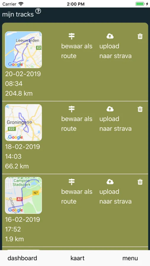- Upload je afgelegde track naar andere apps (b.v. Strava).