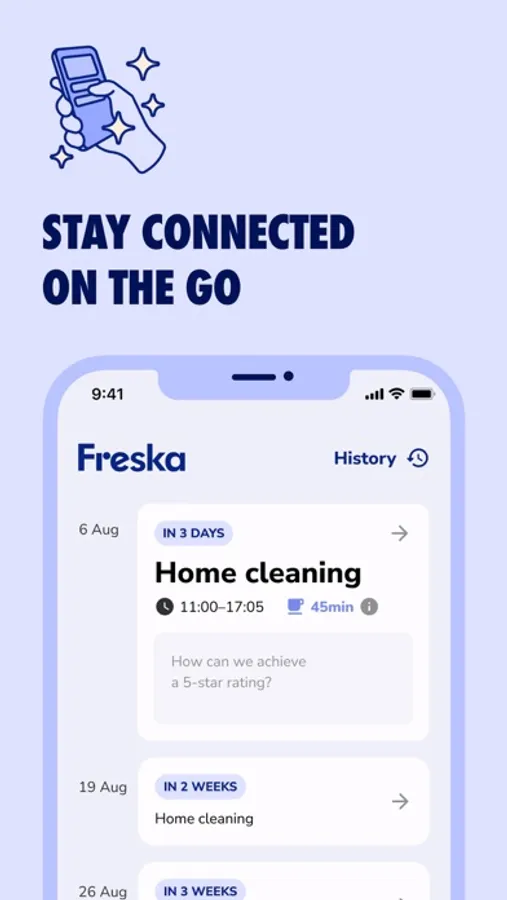 Get the Freska app to manage your cleanings with a swipe of a thumb!