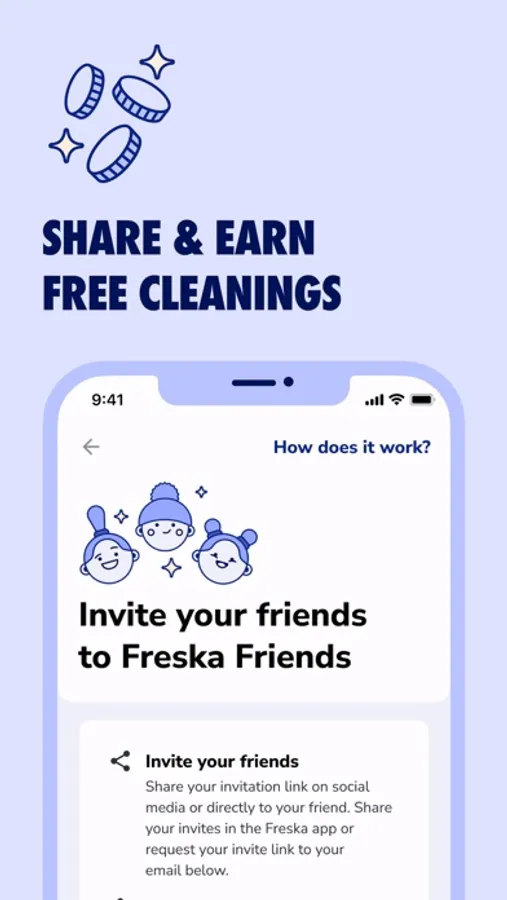 Share your referral code and earn a buck by doing so! You earn Freska credit for every friend you invite, and they get a discount.