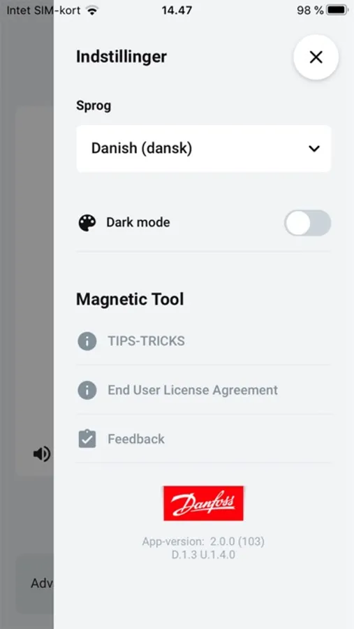 For app support, please use the in-app feedback function found in the app settings or send an email to coolapp@danfoss.com