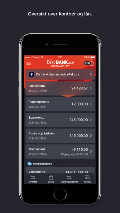 - Få oversikt over alle kontoer og lån