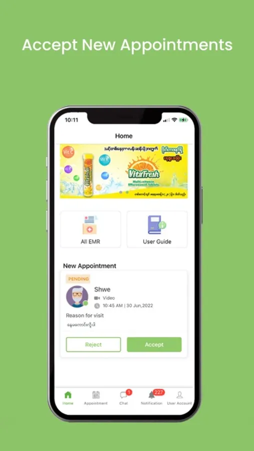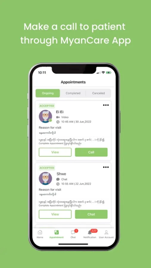 Request a consult – Open the MyanCare App and request a consult or make an appointment, provide medical history and pay for the consult.