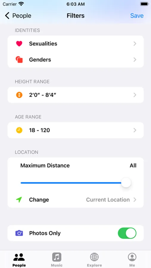 2. Find people by many sexualities & genders, age, height, location, distance and music.