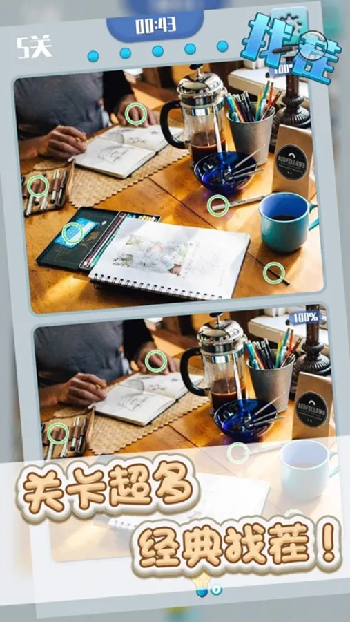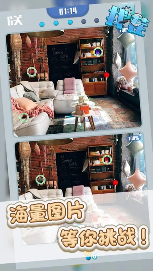 这是是一款骨灰级找茬游戏。游戏中,玩家找出两站图片中所有不同的地方,你对自己的眼力很有自信吗?你觉得自己的观察能力细致入微吗?玩过各种找茬游戏感觉没挑战性吗?在这款游戏中只要你能,你就能体验到细微到像素级的差异。感兴趣的朋友们可以下载游戏进行体验。