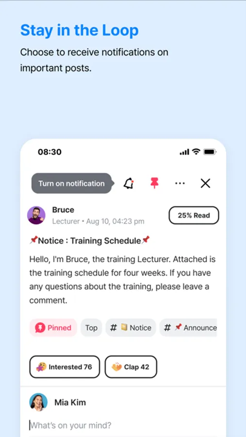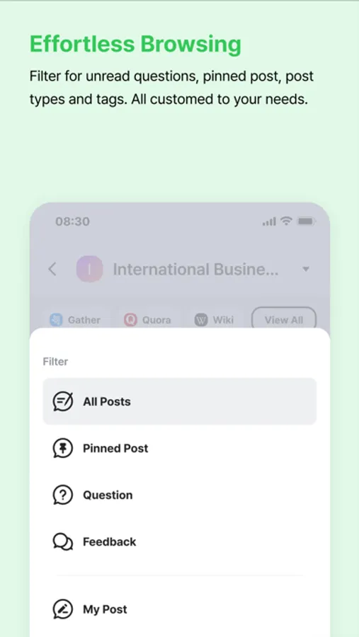A single click is all you need to browse posts. Use tags, pin posts, and filter posts to handily search the information you’re looking for.