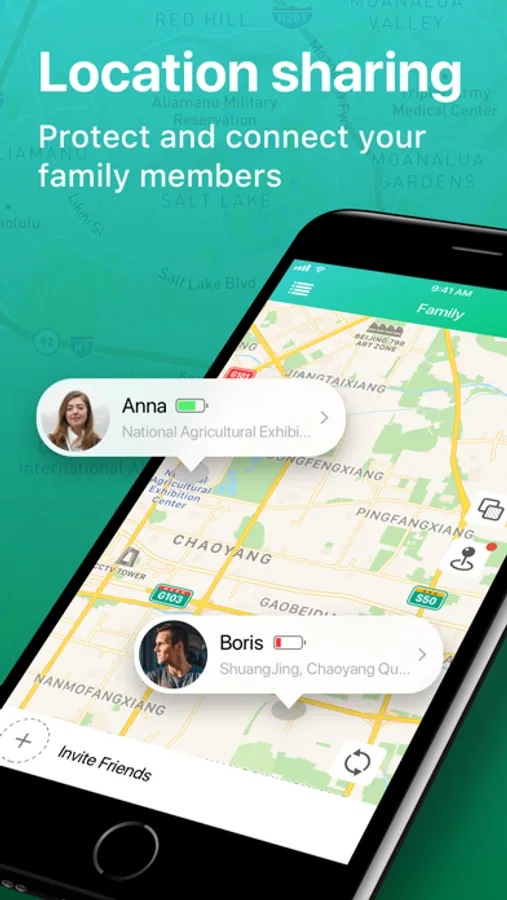 'Find my Friends、Family、iPhone' is the best realtime, location-sharing app, and is the best way to coordinate with family and friends. Get automatic notifications when your family comes and goes from home, work and school.
