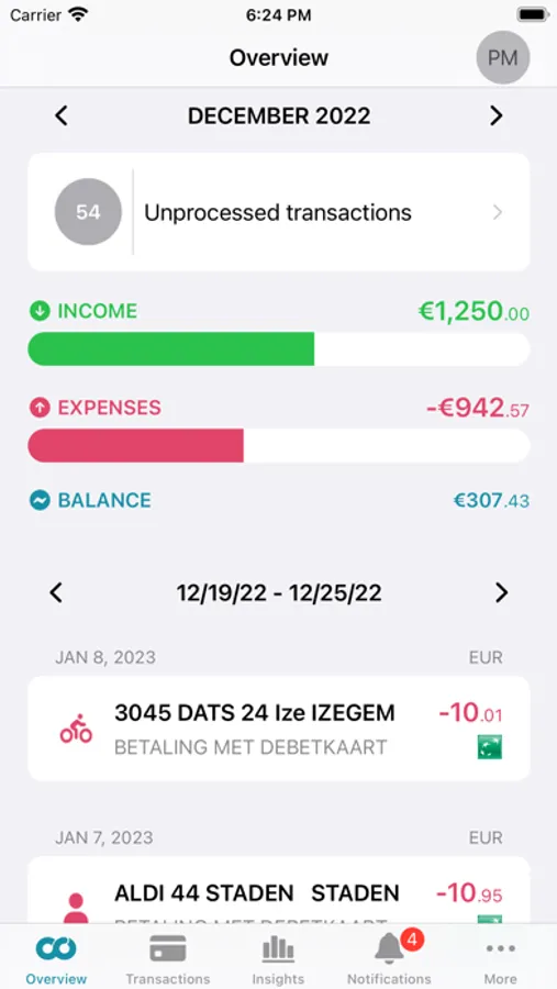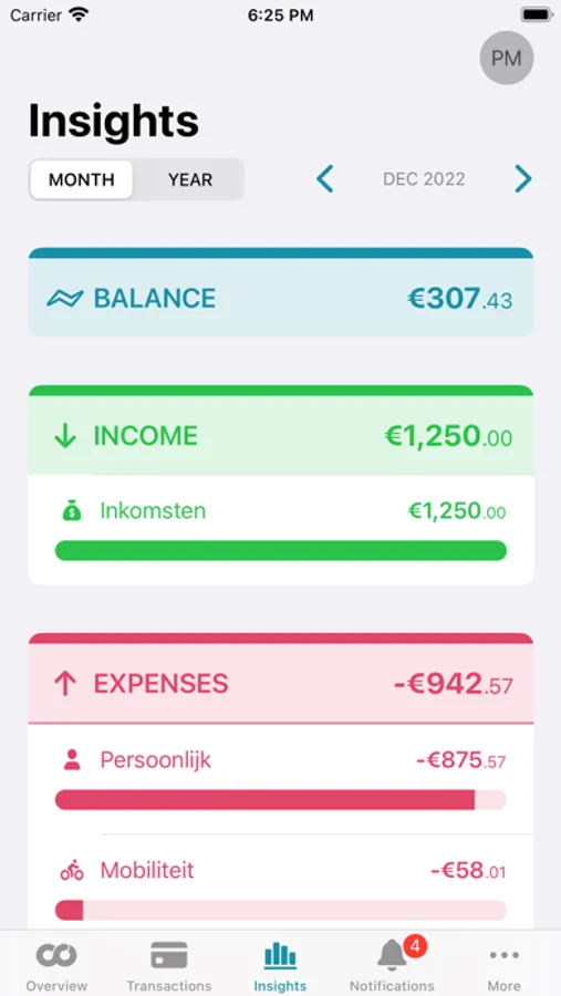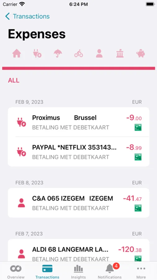 Automatically categorise expenses and income. Our algorithms analyse the details of all your financial transactions and categorise them in the clearest way possible. Are you not happy with the automatically assigned category? Select the category for each transaction yourself. Now you know exactly where your money is going.