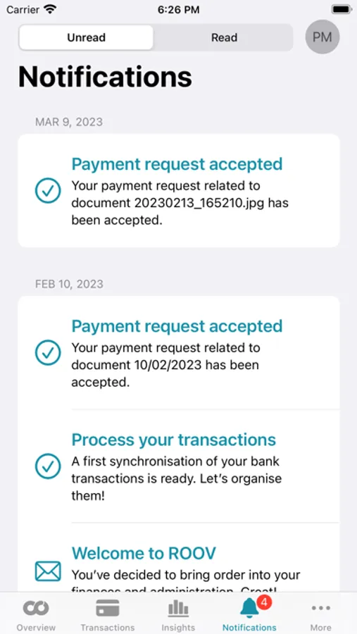 Do you have a budget counsellor or legal guardian? Are you in a debt mediation procedure? Do you rent from a social housing organisation? Then ROOV has some additional features for you. Share your bank account info so your counsellor, lawyer or renter can help you even better. You can also consult in real time payments made from the account(s) managed by your guardian or debt mediator. Transparency leads to a better relationship and cooperation with your counsellor, lawyer or renter.