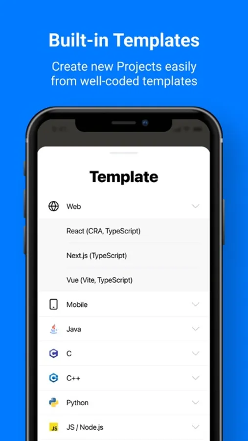 CodeSnack IDE is the first mobile IDE crafted specifically for mobile devices and tablets, unlocking the power of coding right at your fingertips. With fast and intuitive tools, CodeSnack IDE empowers you to create amazing programs, learn from a vast library of samples, and deploy real-world back-end and front-end apps within minutes — all for free.