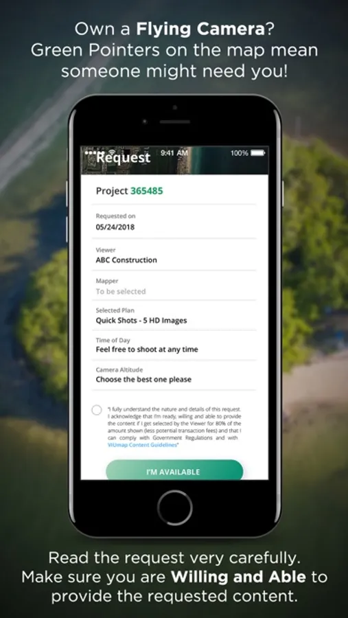 We enable the Architecture, Engineering, Construction and Land Development industry to interact with Flying Camera Enthusiasts to responsibly View, Request and Provide Aerial Pictures anywhere.