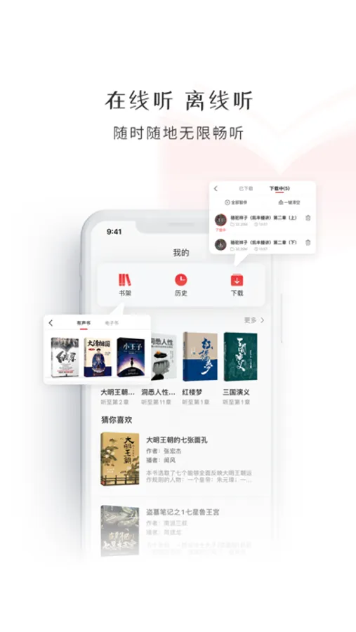 用户通过扫描新语数字图书馆电脑端有声书二维码,将其下载、存储到本地收听,同时有播放记忆、断点播放、定时播放功能。