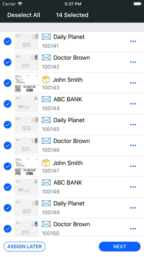 For customers who receive multiple mail items in the same day, scan and assign all their mail items together.