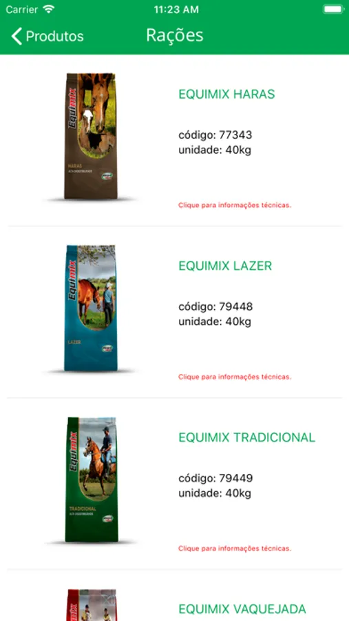 Aplicativo que auxiliar a escolha de uma dieta de alta performance para cavalos.