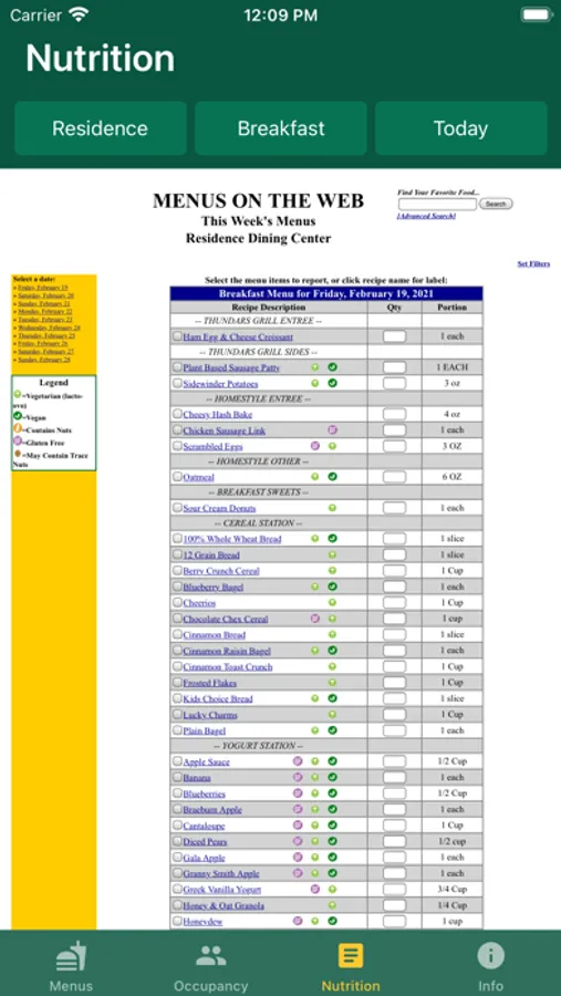 View breakfast, lunch, dinner, and late night menus from West, Residence and Union dining centers at North Dakota State University. You can also view nutrition information as well as allergy information. As well as viewing menus, you can also view hours of operation and serving times and the live occupancy of the dining centers.