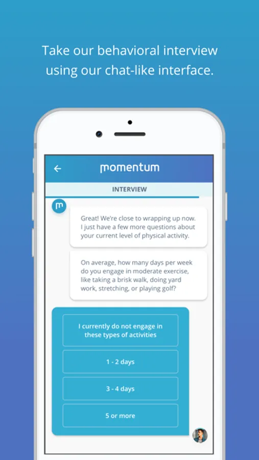 The Momentum Health mobile provides you with unlimited access to your employer's corporate wellness offering -- including biometric screenings, progressive health surveys, coaching, wearable-device integration, and more!