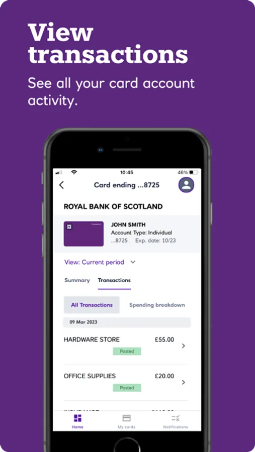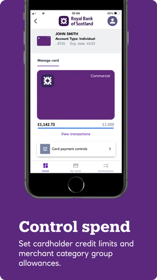 Royal Bank ClearSpend is available to eligible Royal Bank Business and Commercial Card account customers with compatible iOS devices and a UK or international mobile number in specific countries. Over 18s only, other terms and conditions apply.
