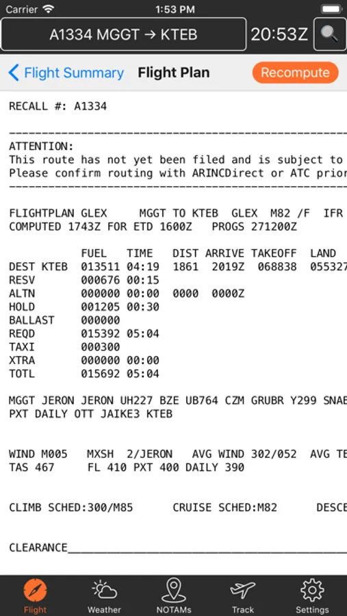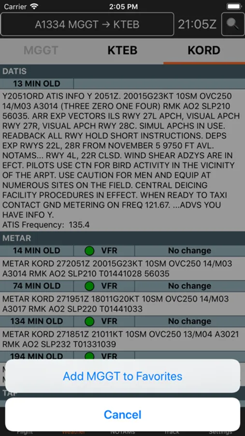 - View METARs, TAFs, NOTAMs, and winds aloft for departure, arrival, and alternate airports