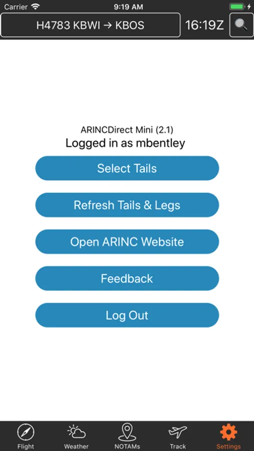 ARINCDirect Mini provides a portable subset of the features offered by ARINCDirect that fits comfortably on a phone-sized screen: Text WX, NOTAMS, and Flight Plans you can look up via Leg.