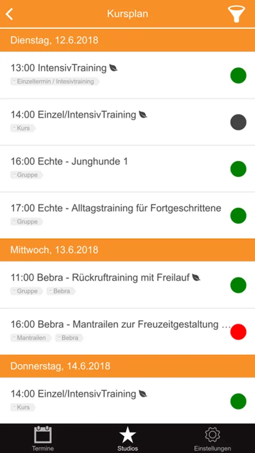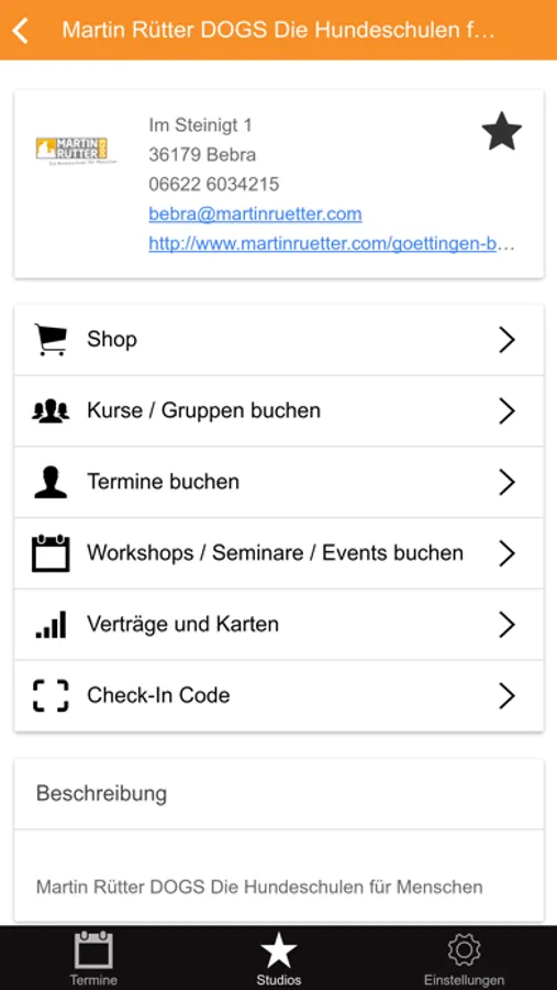 Die App zeigt dir die Details zu Martin Rütter DOGS Bebra & Göttingen und du kannst alle Kurse einsehen. Als bestätigtes Mitglied kannst du dich direkt und einfach für die Kurse anmelden.
