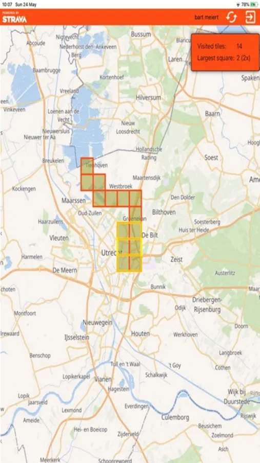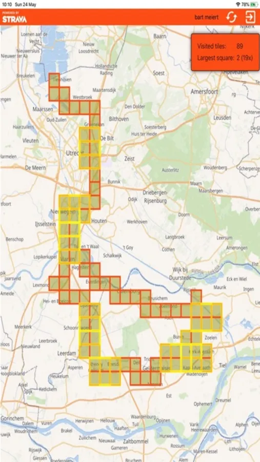 With Squadra you can explore the outside world by going to those places you've never been before. Squadra analyzes all your Strava activities and displays them on a map containing visited squares of approximately 2.5 km * 2.5 km.