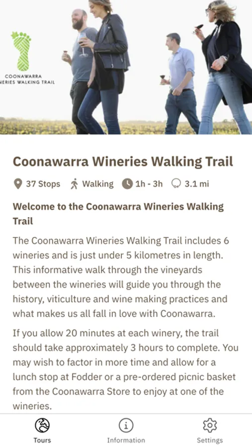 The Coonawarra Wineries Walking Trail includes 6 wineries and is just under 5 kilometres in length. Enjoy an informative walk through the vineyards between the wineries. Learn about the history, winemaking, viticulture and other interesting points of interest along your way using this App.