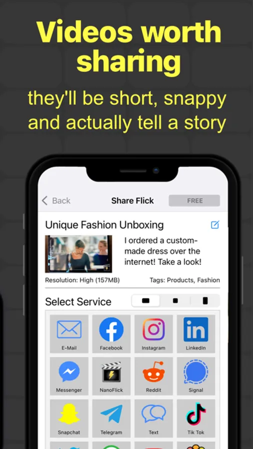 SHARING & INSPIRING: Your flicks can be shared via Twitter, TikTok, YouTube, Instagram, Reddit, LinkedIn, Facebook, Messenger, WhatsApp, SnapChat, Telegram, Signal, Email and other platforms. You can also share it on NanoFlick so others can follow you and be entertained and inspired.