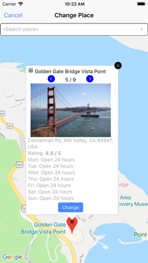 6. Show the restaurants or gas stations on the map near a place.