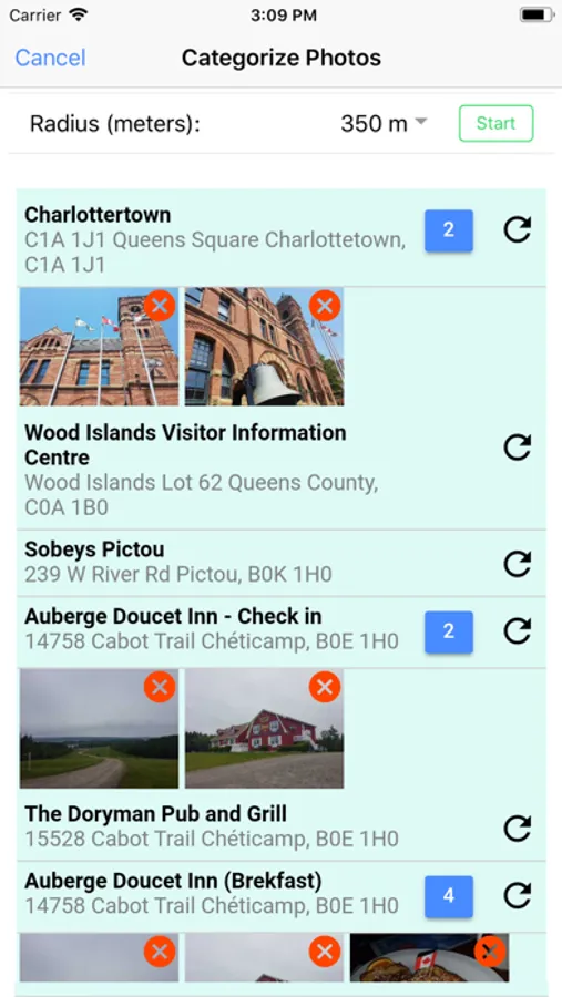 7. Categorize all the pictures taken during the trip by places.