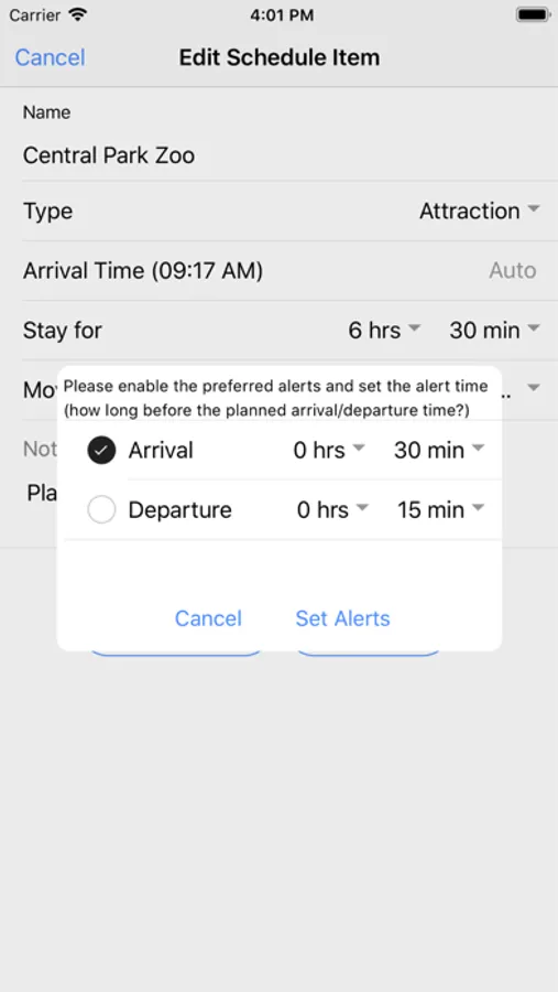 4. Get alerts before a specified time of the arrival / departure time, so that a flight / bus, performance, celebration, meeting, check-in / checkout, and other set-time events will not be missed.