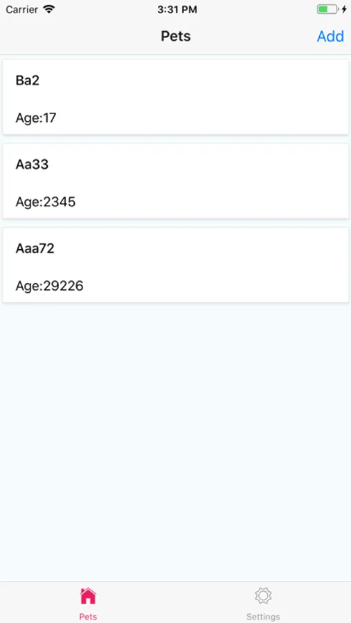 - Add/Edit/Remove a pet including some fields, e.g. name and age.