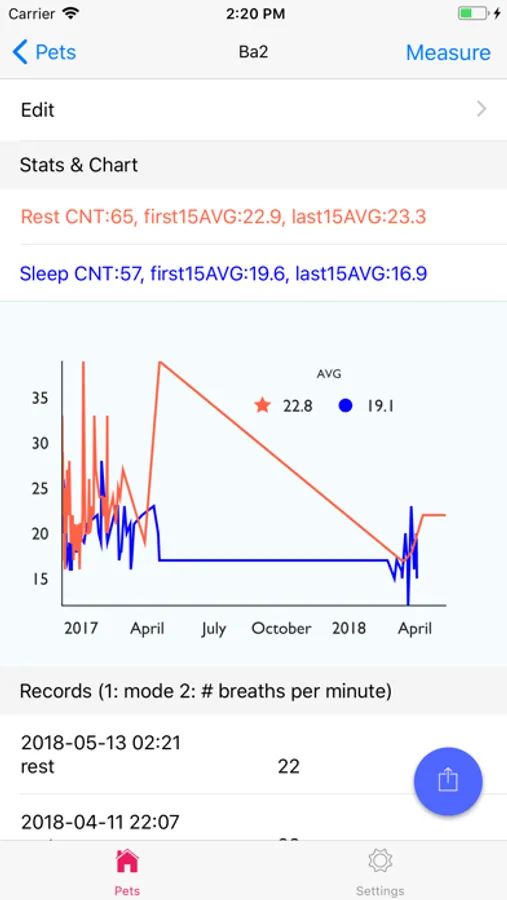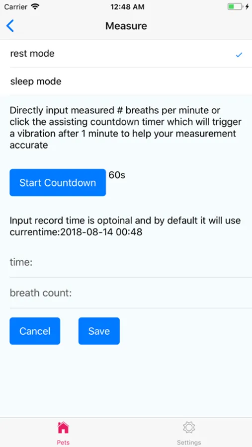 - [measure] Directly input a record or use a countdown vibration timer to help. Also, there is an (optional) helper button to count breaths, clicking once will add 1 count.