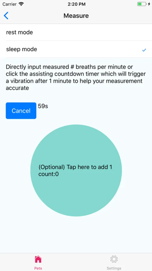 Daily Record a pet's (etc cat/dog) respiratory rate (# Breaths per Minute).