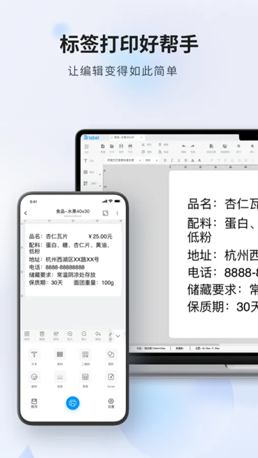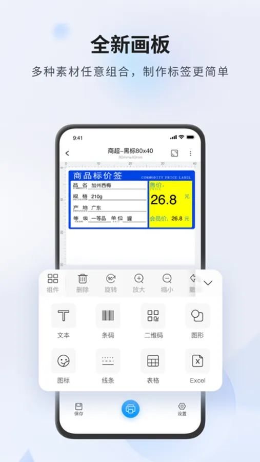 DLabel云标签是一款简单好用、功能强大的标签编辑软件,标签可存储在云端,不易丢失更安全。通过手机蓝牙连接便携式打印机即可打印,随时随地,方便快捷。支持文字、条码/二维码、图片/图形、行业标志等图元编辑,同时还可扫码建模、智能识别图片和文字,让打印变得更加容易!