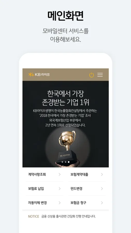 -고객센터: 이용안내, 공지사항, 자주하시는 질문, 고객상담접수, CS Center 안내, 라이프파트너® & Agency 검색, 보험금 청구 안내, 계약사항변경 신청 안내, 제지급 신청 안내