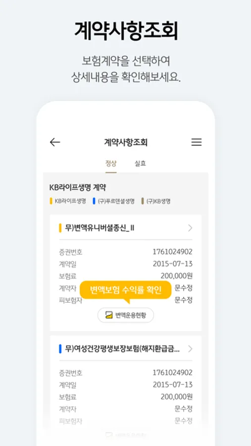 -보험: 계약사항조회, 보장자산조회, Love Letter, 신계약 중요사항 확인