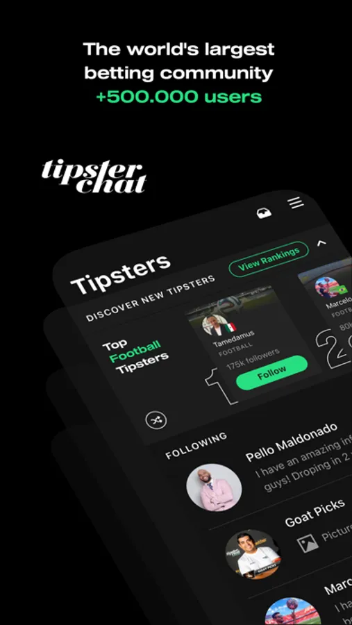 - Discover new Tipsters through our platform, explore their historical performance and rate their tips.