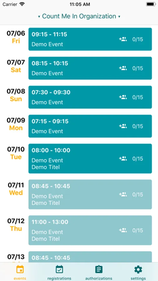 Kunden-App der Count Me In Platform. Ermöglicht es sich zu Events von Count Me In Organisationen anzumelden.